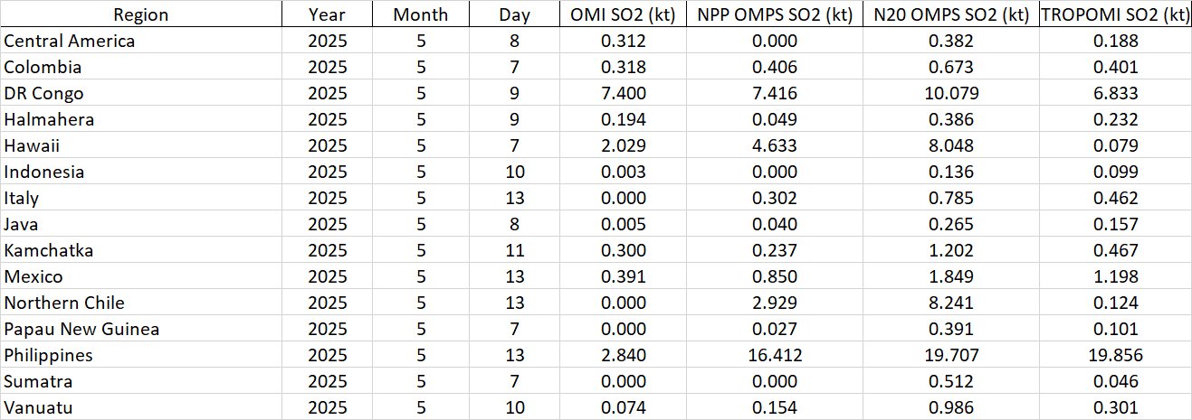 Philippines - Kanlaon & Taal: OMI NPP-OMPS TROPOMI N20-OMPS